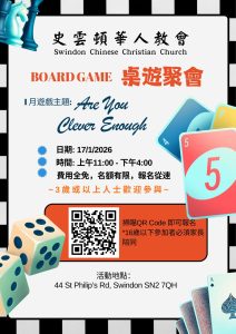14:00 -15:00 25/01/2026 44 St. Philip’s Road, Upper Stratton, Swindon, SN2 7QH, England 44 St. Philip’s Road, Upper Stratton, Swindon, SN2 7QH, England https://swindon-sccc.org.uk/zh/event/2026%e5%b9%b41%e6%9c%88%e7%a5%88%e7%a6%b1%e6%9c%83/  日期:2026年1月25日(日) 時間:下午2時正至3時正 Date: 25/1/2026 (Sun) Time: 2:00-3:00 p.m.